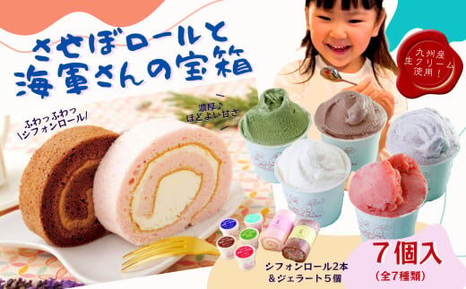 F110p 【ご褒美スイーツ】させぼロールと海軍さんの宝箱 全7種 のセット【サセボスイーツいくた】 ジェラート アイス シャーべット ミルク いちご チョコレート 抹茶 ブルーベリー スイーツ 濃厚 カップ スウィーツ ギフト 贈り物 ご当地 お取り寄せ 詰め合わせ 大人気 長崎 佐世保