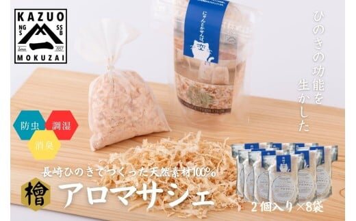 おがくず状に加工した長崎県産ひのきを主原料とした天然アロマ商品です。