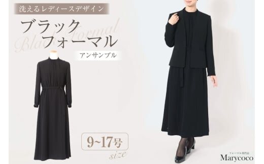 AI373-b Marycoco 洗える ノーカラージャケット 前開き ロング丈ワンピース ブラック フォーマル アンサンブル [MC-3530 ジャケット ワンピース レディース ロング きれいめ メアリーココ 長崎県 島原市 ]