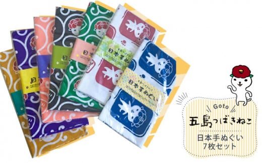 【大人気!ゆるっと癒しの五島市キャラクター】五島つばきねこ 日本手ぬぐい7枚セット 五島市 / Slow Cafe たゆたう。[PCI005]