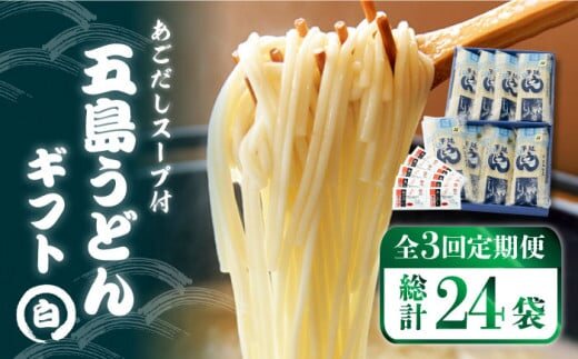 【全3回定期便】 五島うどん ギフト (白8本入) あごだし スープ 細麺 乾麺 手延べうどん セット 五島市 / 五島あすなろ会 うまか食品 [PAS008]