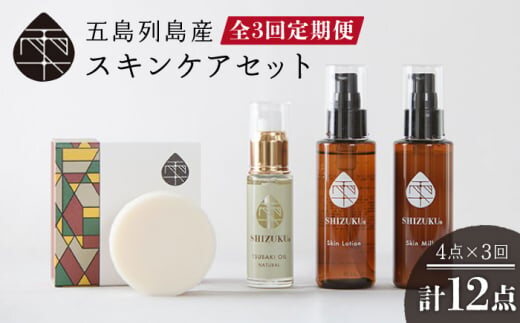 【全3回定期便】 雫 スキンケアセット (椿オイル ・ 椿葉ローション ・ 椿のウルオイミルク ・ 洗顔石けん) 椿油 洗顔料 化粧水 乳液 五島市/椿乃 [PAM014]
