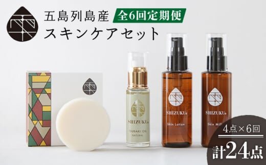 【全6回定期便】 雫 スキンケアセット (椿オイル ・ 椿葉ローション ・ 椿のウルオイミルク ・ 洗顔石けん) 椿油 洗顔料 化粧水 乳液 五島市/椿乃 [PAM015]