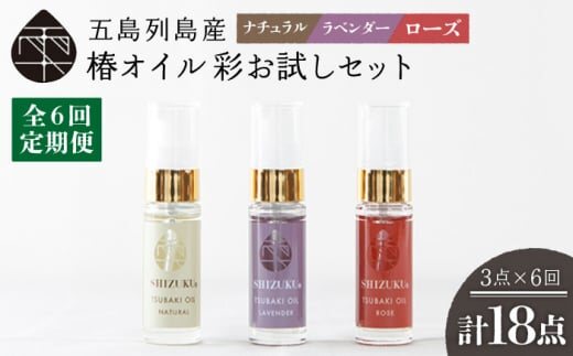 【全6回定期便】雫 椿オイル 彩 お試しセット 化粧用 3種セット(ナチュラル・ローズ・ラベンダー) 肌 髪 頭皮 顔 保湿オイル 五島市/椿乃 [PAM024]