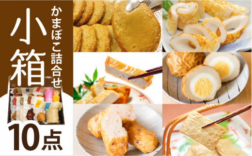 容量 | かまぼこ10点(えそちくわ、 あご天、 いわしバーグ1枚、 えそ天1枚、 島小板(五島白扇)、 ピリ辛いかゲソ、 あご刺身蒲鉾、 あじ天1枚、 水面月、 じゃこ天) |