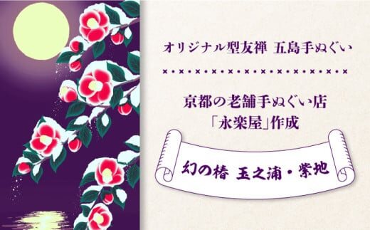 五島列島『幻の椿 玉之浦・紫地』オリジナル型友禅 てぬぐい 手ぬぐい 五島市 / きわわ [PFT006]