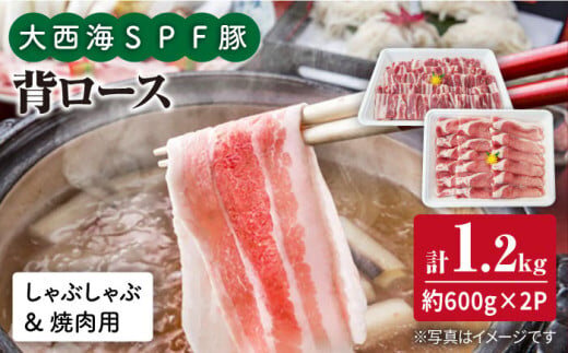 【よくばりセット】大西海SPF豚 背ロース(焼肉&しゃぶしゃぶ用)計1.2kg(600g×2パック) 訳あり <大西海ファーム> [CEK039]