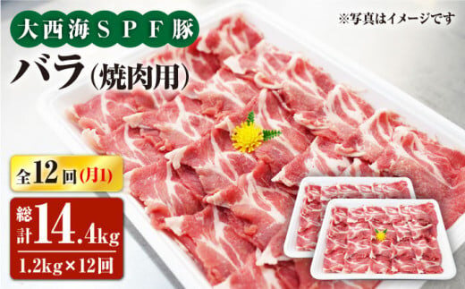 【月1回約1.2kg×12回定期便】大西海SPF豚 バラ(焼肉用)計14.4kg 訳あり <大西海ファーム [CEK121]