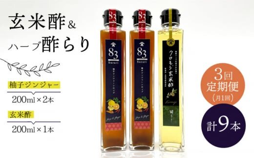 【飲むお酢】 【3回定期便】玄米酢とハーブ酢らり 3本セット <川添酢造> [CDN077]