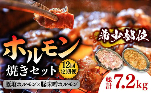 【12回 定期便 】ホルモン 塩焼き・ニンニク味噌焼きセット 総計7.2kg / ほるもん 肉 豚肉 直腸 豚テッポウ 希少部位 国産 / 南島原市 / はなぶさ [SCN139]