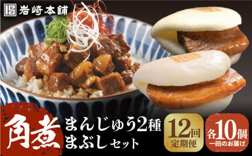 【全12回定期便】【簡易包装】 角煮3種 計30個(長崎角煮まんじゅう10個/大とろ角煮まんじゅう10個/角煮まぶし10袋) 長与町/岩崎本舗 [EAB040] 角煮まんじゅう 岩崎 岩崎本舗 定期 定期便