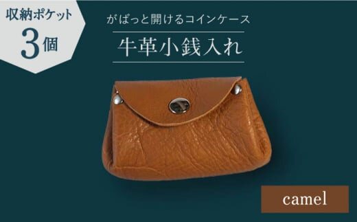 【コインを3つに分けて収納できる】牛革 小銭入れ(キャメル)長与町/グッピーサウンド [EBG008] ハンドメイド コインケース 革小物
