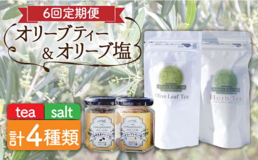 【全6回定期便】オリーブ塩 & オリーブティー セット (各2種)長与町/ゆきのヶ丘オリーブ園 [EAV008] 調味料 お茶 オリーブティー