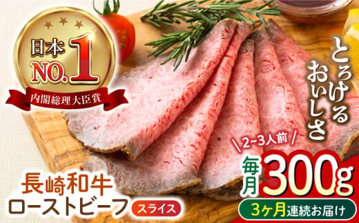 【3回定期便】 長崎和牛 ローストビーフ スライス 300g 長与町/ワタナベ商店 [ECT006] 国産 長崎和牛 和牛 ローストビーフ ろーすとびーふ スライス 牛肉 赤身 冷凍 ソース付き ギフト お祝い 定期 定期便