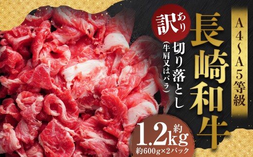- 【訳あり】【A4~A5】 長崎和牛 切り落とし 約1.2kg (約600g×2パック)