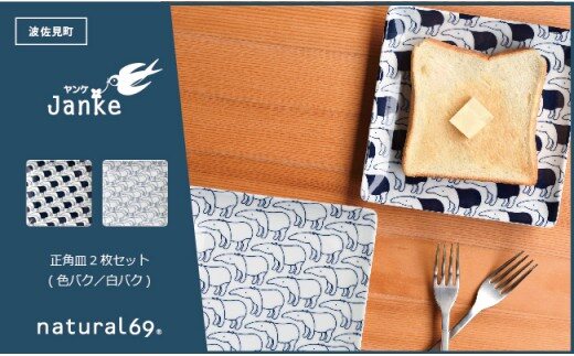 【波佐見焼】natural69 Janke 正角皿2枚セット 色バク/白バク [QA05]