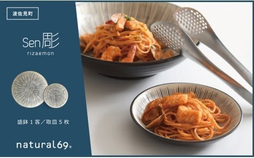 【波佐見焼 利左エ門窯】 Sen彫 盛鉢1客/取皿5枚 食器 皿 【natural69】 [QA40]