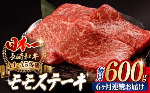 【全6回定期便】程よい霜降り! モモ ステーキ 600g (150g×4枚) 長崎和牛 A4~A5ランク【野中精肉店】 [VF64] 肉 牛肉 赤身 もも モモステーキ 焼肉 定期便