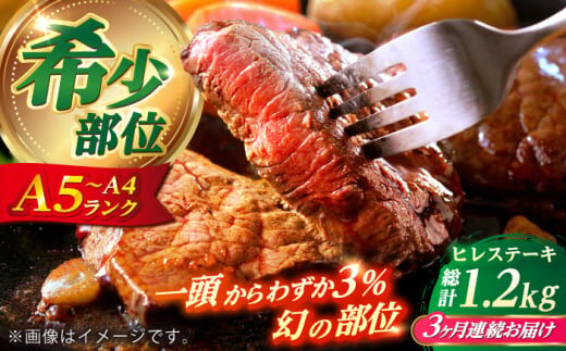 【全3回定期便】 長崎和牛 ヒレ ステーキ 200g×2 【KRAZY MEAT】 A5 A4 冷凍 和牛 肉 牛肉 BBQ [RCQ014]