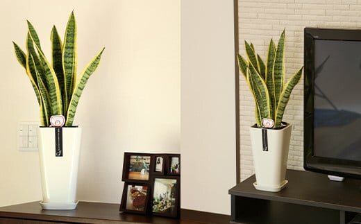 - 観葉植物 サンスベリア 6号 カラーポット 白 約65~75cm