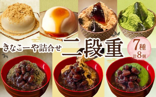 きなこーや 詰合せ 二段重 7種 計8個 風呂敷包み 和スイーツ ギフト用 プリン わらび餅 ぜんざい セット
