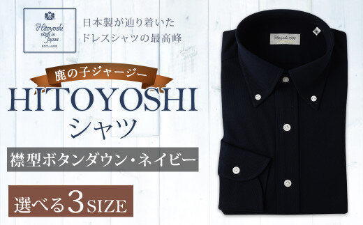 - 「HITOYOSHIシャツ」鹿の子ジャージー ボタンダウン ネイビー