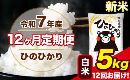 新米 令和7年産 【12ヶ月定期便】 ひのひかり 白米 5kg 5kg×1袋 計12回お届け 熊本県産 こめ コメ 白米 精米 荒尾市 ひの 米 定期 《1月から出荷開始》