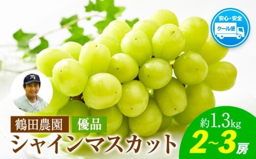 【優品】先行予約 シャインマスカット 鶴田農園 約1.3kg (2~3房) 熊本県荒尾市産《8月下旬-9月下旬頃出荷》熊本県 荒尾市 フルーツ 果物 送料無料 葡萄 ぶどう マスカット