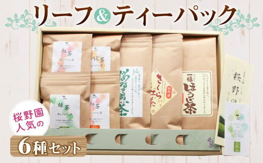 桜野園人気の リーフ&ティーパックセット 6種類 緑茶 紅茶 ほうじ茶