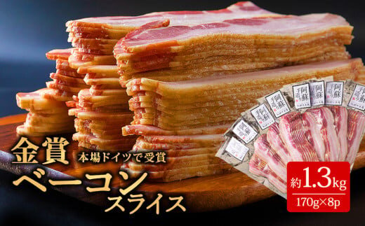 本場ドイツ食肉コンテストsuffa★金賞受賞★ ベーコンスライス 小分けパック 170g×8パック 約1.3kg 大容量!! どんな料理も一味ランクアップ♪ ひばり工房 おつまみ 豚肉 スモーク ベーコン オリジナルスパイス ふるさと納税 惣菜 まとめ買い 冷蔵 朝食 人気 簡単 ジューシー お手軽 小分け 手造り 豪華 贅沢 贈り物 贈答用 朝食 熊本県 阿蘇市