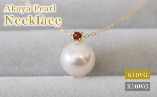 S085-535_あこや真珠 ペンダント ネックレス 8mm - 8.5mm K10 天草 熊本 ホワイトピンク 誕生石 1月 ガーネット 半貴石 本真珠