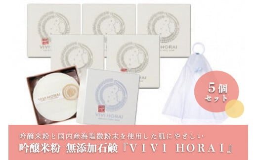 ■吟醸米粉 無添加石鹸「VIVI HORAI(美々蓬莱)」80g×5個(泡立ネット付) ●原材料 石鹸素地・国内産海塩・吟醸米パウダー・ヒアルロン酸 |