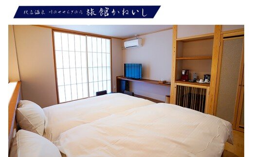 1泊2食付ペア宿泊券(2名1室) ・ご利用客室:木の温もりを感じる和洋室 ・チェックイン15時~(最終受付 17時)/チェックアウト~10時 ※客室の詳細については、予約時にご確認ください ※ご予約の状況により、ご希望日時のご予約に添えない場合がございます。 <寄付お申し込み後の流れ> ・寄付お申し込み受付後、当宿より宿泊券を送付いたします。 ・チケット到着後、お電話(TEL:0967−48−0341)にてご予約の希望、確認をお伝えください ※ご予約の状況により、ご希望に添えない場合がございます ※キャンセル・変更の場合は宿泊予定日の5日前までにお知らせください (4日前以降のキャンセルは宿泊券無効となります) ・ご予約日当日は本券をご持参いただき、チェックイン時に必ずご提示ください。 ※お忘れの場合はサービスをご提供出来かねます(宿泊時に既定の料金をお支払い頂きます) ・除外日/年末年始、GW、お盆の期間はご利用いただけません ・ご予約は必ずお電話にて当該施設へお問合せください ・入湯税(12歳以上150円)を別途頂戴いたします ・飲み物や追加料理等の金額及び詳細はご予約時にご確認ください ・換金、お釣りのお支払いはございません。 ・他割引との併用はできません <空室確認・宿泊予約> ●旅館かねいし(TEL:0967−48−0341) ※受付時間 9時~19時 ※使用期限に関してのお問い合わせ・宿泊チケットがお手元に届く前に旅館へのご予約を希望される方は、お申込み前に上記までご連絡ください。 |