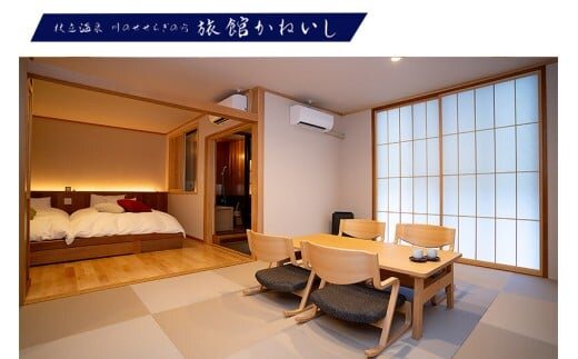 1泊2食付ペア宿泊券(2名1室) ・ご利用客室:スイート和洋室(檜の内湯付き) ・チェックイン15時~(最終受付 17時)/チェックアウト~10時 ※客室の詳細については、予約時にご確認ください ※ご予約の状況により、ご希望日時のご予約に添えない場合がございます。 <寄付お申し込み後の流れ> ・寄付お申し込み受付後、当宿より宿泊券を送付いたします。 ・チケット到着後、お電話(TEL:0967−48−0341)にてご予約の希望、確認をお伝えください ※ご予約の状況により、ご希望に添えない場合がございます ※キャンセル・変更の場合は宿泊予定日の5日前までにお知らせください (4日前以降のキャンセルは宿泊券無効となります) ・ご予約日当日は本券をご持参いただき、チェックイン時に必ずご提示ください。 ※お忘れの場合はサービスをご提供出来かねます(宿泊時に既定の料金をお支払い頂きます) ・除外日/年末年始、GW、お盆の期間はご利用いただけません ・ご予約は必ずお電話にて当該施設へお問合せください ・入湯税(12歳以上150円)を別途頂戴いたします ・飲み物や追加料理等の金額及び詳細はご予約時にご確認ください ・換金、お釣りのお支払いはございません。 ・他割引との併用はできません <空室確認・宿泊予約> ●旅館かねいし(TEL:0967−48−0341) ※受付時間 9時~19時 ※使用期限に関してのお問い合わせ・宿泊チケットがお手元に届く前に旅館へのご予約を希望される方は、お申込み前に上記までご連絡ください。 |