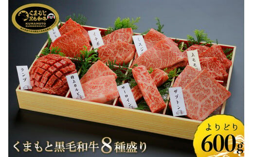 ●黒毛和牛8種盛り…600g(赤身、ロースなど計8部位) ※肥育地/熊本県 |