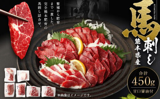 熊本県産馬刺し450gセット 食べ比べ 詰め合わせ 甘口馬刺醤油付き 馬肉 肉