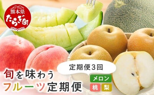 【フルーツ 定期便 3回】2026年発送分 メロン・桃・梨 旬 3回配送 数量限定 肥後グリーンメロン 球磨の桃 豊永の梨 フルーツ 果物 名産 熊本 多良木町 092-0506