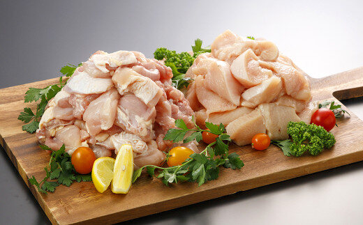 鶏モモ一口カット:2,400g(300g×8) 鶏ムネ一口カット:1,200g(300g×4) |