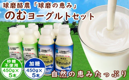 球磨の恵み「のむヨーグルト」450g×10本セット(加糖450g×5本・砂糖不使用450g×5本)