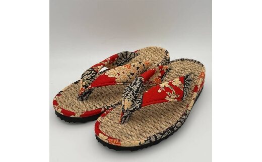・模様:なおみ赤 ・1足 ・Mサイズ(23.0cm~23.5cm目安) ・原材料:カヤツリ草(七島い草) ・綿生地・EVA |