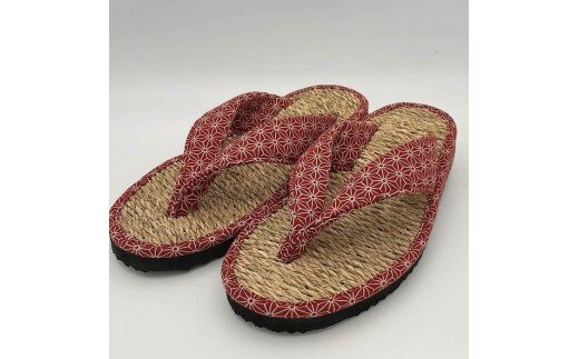 ・模様:麻の葉赤 ・1足 ・Mサイズ(23.0cm~23.5cm目安) ・原材料:カヤツリ草(七島い草) ・綿生地・EVA |