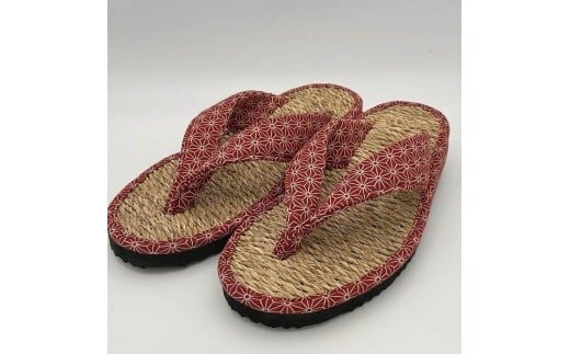 ・模様:麻の葉赤 ・1足 ・Lサイズ(24.0cm~24.5cm目安) ・原材料:カヤツリ草(七島い草) ・綿生地・EVA |