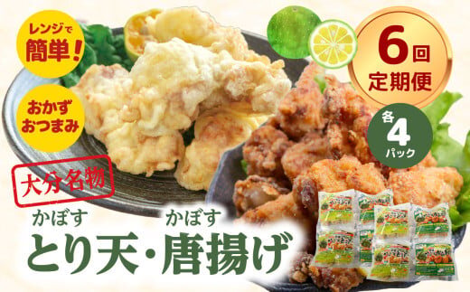 大分名物!かぼすとり天・かぼす唐揚げ 各4パック(6回お届け定期便) 大分県 郷土料理 鶏肉 かぼす 豊後 定期便 おかず お弁当 おつまみ 国産 T10014