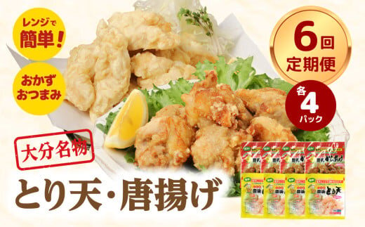 【定期便】大分名物!とり天・唐揚げ 各4パック(6回お届け定期便) 大分県 郷土料理 鶏肉 かぼす 豊後 定期便 おかず お弁当 おつまみ 国産 T10013