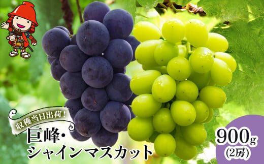 【先行予約】シャインマスカット・巨峰ブドウ 詰め合わせ セット 約900g (2房) 種あり | ブドウ ぶどう 葡萄果物 フルーツ くだもの 産地直送 甘い 大分県産 九州産 中津市 国産 送料無料