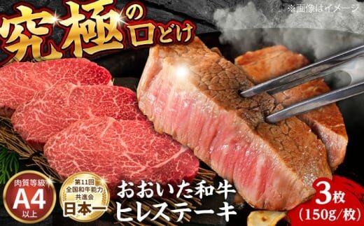おおいた和牛ヒレステーキ(150g×3枚) 日田市 / (株)吉野(デリカミート吉野) 和牛 ヒレ ヒステーキ [ARFE001]
