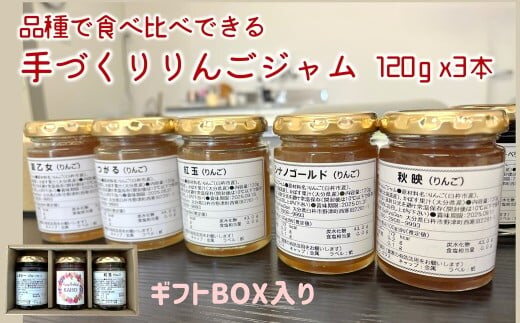 品種で食べ比べできるりんごジャム(ギフトボックス付)120g×3本 果実から手づくり 化学合成農薬不使用