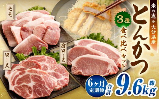 【6ヶ月定期便】 とんかつ 3種食べ比べセット 大分県産 豚肉 約1.6kg ×6回 合計9.6kg 【米の恵み】 ロース 肩ロース モモ トンカツ 【2025年11月上旬順次発送開始予定】