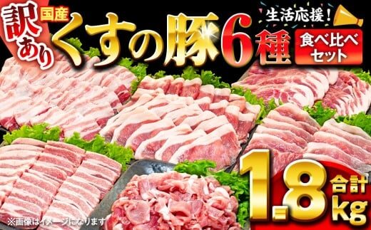 【訳あり】くすの豚 1.8kg 6種 バラエティーパック 豚肉 1.8キロ 食べ比べ 小分け 詰め合わせ セット 真空パック 冷凍 保存しやすい 簡単調理