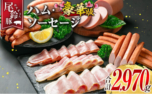 【PREMIUM PORK】 尾鈴豚 ハム ソーセージ 7種 詰め合わせ 豪華版 合計2970g 宮崎県産